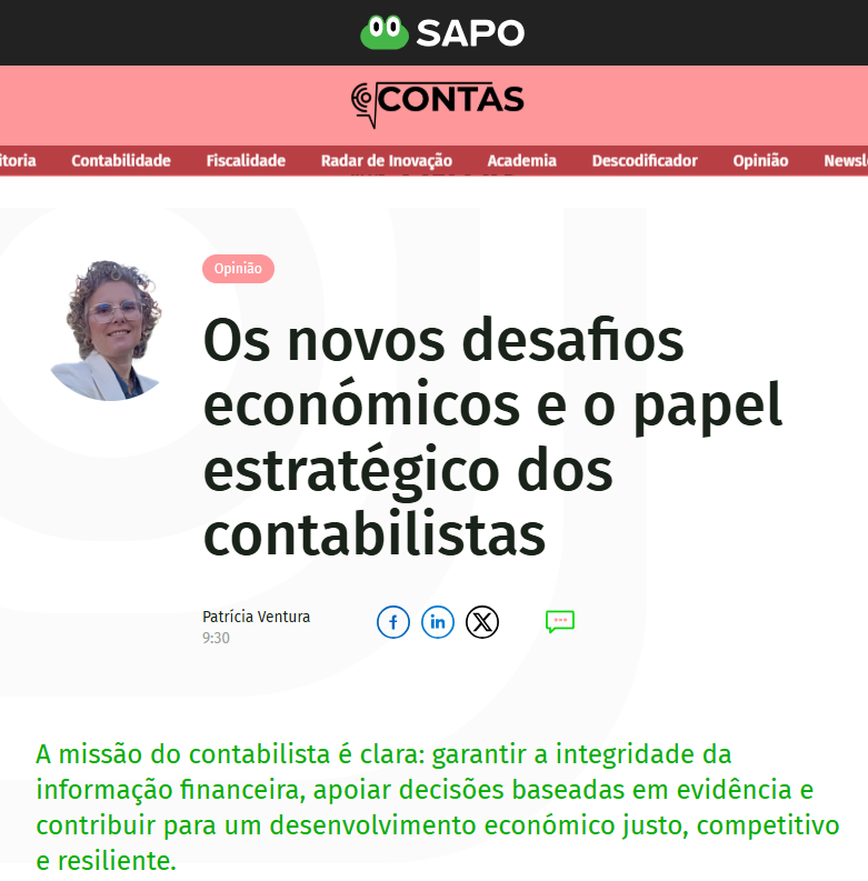 A nossa fundadora, Patrícia Ventura, Contabilista Certificada pela Ordem dos Contabilistas Certificados (OCC), publicou recentemente um artigo de opinião na ECO – Economia Online, onde analisa a evolução do papel do contabilista e os desafios da profissão num contexto económico em constante transformação.